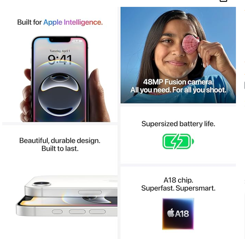 - A18 CHIP. FAST INTO THE FUTURE — A18 chip empowers Apple Intelligence, gaming and iOS updates for years to come.